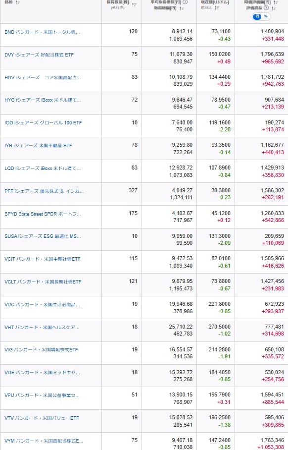 【ETF】保有米国ETFの状況 2026.3 2026.03.27 小心者です。 米国ETFは、小心者のアセットの中で全体の約11%を占めていて、リスク資産では一番多くなっています。 現在保有しているETFの損益状況です。(2026.3.27時点) 円ベースでは、今月も全てプラスですが、ドルベースでは引き続き債券系の6銘柄がマイナスのままです。PFFが1900ドル超、VCLTが1800ドル超のマイナスで、マイナス拡大中 ブログランキングに参加中