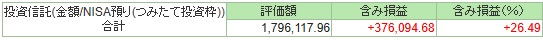 NISA つみたて投資枠分 +26.49%