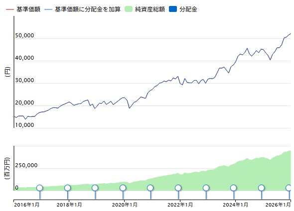 ですが、1本だけアクティブファンドも保有しています。毎月少額の積み立てです。