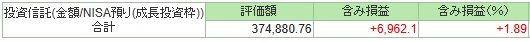 NISA 成長投資枠分 +1.89%
