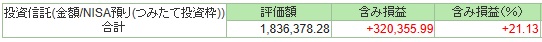 NISA つみたて投資枠分 +21.13%