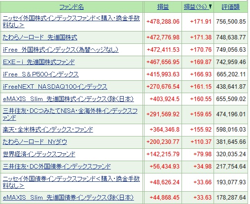 【投資信託】インデックス投信積立の2026.4月時点の成績